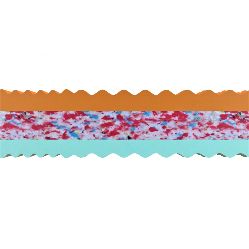 Střední vrstva je vyrobena z pojené polyuretanové pěny typu R80. Zelená a oranžová strana je vyrobena z paměťové pěny o hustotě 42 kg/m3 s masážním profilem rozděleným do sedmi zón.